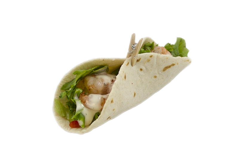 Tandoori risarækja, íssalat, tómatur og hvítlaukssósa